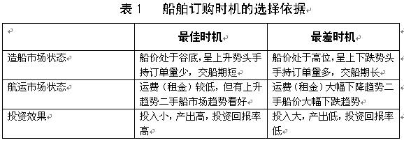 從影響船東選擇船舶訂購時機(jī)的主要因素看,除與公司自身發(fā)展戰(zhàn)略、資金實(shí)力和籌集能力等內(nèi)部因素有關(guān)外,還與當(dāng)時造船市場和航運(yùn)市場的狀態(tài)和發(fā)展趨勢,特別是船價(jià)和運(yùn)價(jià)狀況密切相關(guān)。我們認(rèn)為,航運(yùn)企業(yè)最理想投資訂造新船的時機(jī)是:船價(jià)已進(jìn)入谷底并即將上漲,航運(yùn)市場低迷但中長期趨勢看好。
