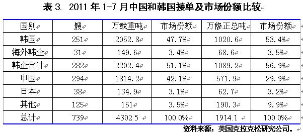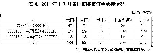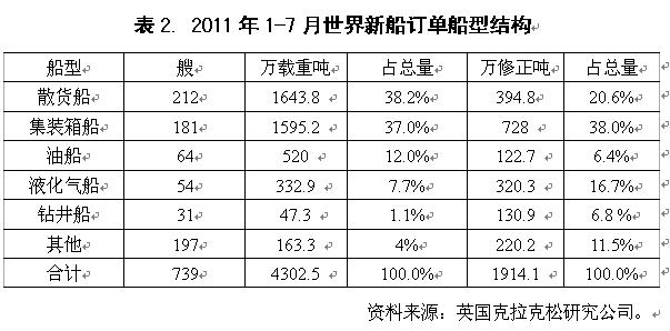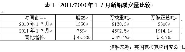 2011年1-7月國際造船市場新船需求總量同比出現(xiàn)大幅下滑,但需求結構朝高技術高附加值船型轉(zhuǎn)變,受此影響,全球船舶市場競爭格局也發(fā)生顯著變化。從影響行情發(fā)展主要因素看,無論是經(jīng)濟發(fā)展、航運市場供求關系,還是船舶融資市場狀況,下半年出現(xiàn)明顯改觀的難度很大,船舶市場面臨形勢更加復雜嚴峻。
