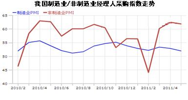制造業(yè)PMI除3月份短暫回升以外,持續(xù)小幅回落,顯示出經(jīng)濟(jì)增速逐漸趨緩。 5月份從11個分項指數(shù)均有不同程度回落,其中,新訂單指數(shù)、積壓訂單指數(shù)、購進(jìn)價格指數(shù)、原材料庫存指數(shù)回落較明顯,回落幅度超過1個百分點(diǎn),尤其以購進(jìn)價格指數(shù)回落幅度為最大,達(dá)到5.9個百分點(diǎn) 。