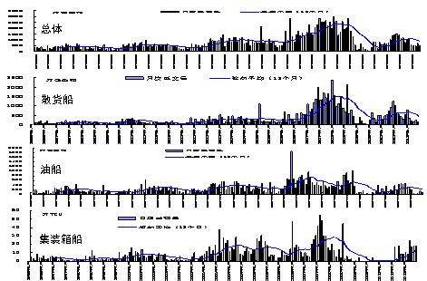 2)   導(dǎo)致市場波動大:船舶運(yùn)力增減與海運(yùn)量升降不同步(滯后2年左右),從而,使航運(yùn)市場上供求不平衡加劇。(同樣船廠建設(shè)周期長,產(chǎn)能變化不能與需求匹配)。