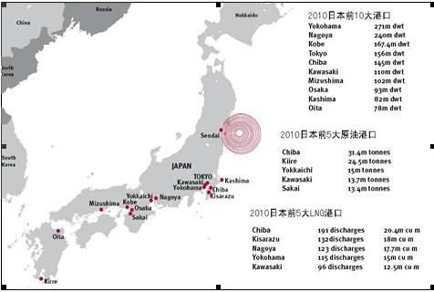 大地震發(fā)生后,日本立即關(guān)閉國內(nèi)所有港口,據(jù)英國勞氏統(tǒng)計,當(dāng)日日本因港口關(guān)閉造成的損失達(dá)34億美元。日本港口主要分布在南部地區(qū)和東南部,多數(shù)港口離震區(qū)較遠(yuǎn),沒有受到直接沖擊。目前,我們只知道位于震區(qū)的仙臺港遭遇毀滅性破壞,盡管該港口是日本比較重要的集裝箱、原油港口,但是對整個日本港口運(yùn)營影響十分有限。