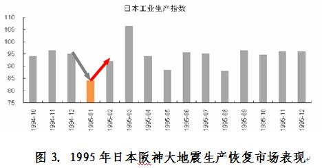 由此可見,無論是整個國家經(jīng)濟(jì)結(jié)構(gòu),災(zāi)害初評估,或受災(zāi)地區(qū)在國民經(jīng)濟(jì)中地位和對國民經(jīng)濟(jì)實際影響等角度,此次地震(海嘯)帶來的影響可能要弱于1995年阪神地震。同時,大家知道1995年阪神地震對生產(chǎn)的實際影響也是短期的,震后生產(chǎn)恢復(fù)非常迅速,并且某種程度上有效帶動本國經(jīng)濟(jì)繁榮。為此,我們認(rèn)為此次地震危害對日本工業(yè)生產(chǎn)帶來的沖擊總體上較為有限。