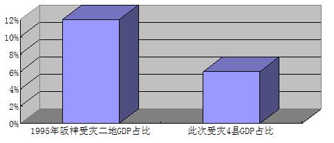 第三,受災(zāi)地區(qū)占本國經(jīng)濟(jì)總量比重不大。本次受災(zāi)4縣(主要4縣,分別為日本巖手縣、福島縣、宮城縣和茨城縣)占日本在6%左右,而1995年大阪和兵庫兩個最嚴(yán)重的受災(zāi)區(qū)(不包含其他波及地區(qū))占當(dāng)時日本全球GDP比重達(dá)12.4%。此次受災(zāi)地區(qū)4縣與1995年阪神地區(qū)在當(dāng)時日本經(jīng)濟(jì)中的地位無法相提并論。