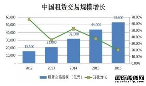 根據(jù)中國租賃聯(lián)盟發(fā)布的數(shù)據(jù),截至2016年底,我國融資租賃合同余額約53,300億元,年較2007年業(yè)務(wù)量增長超過200倍,年均復(fù)合增長率高達82.27%。