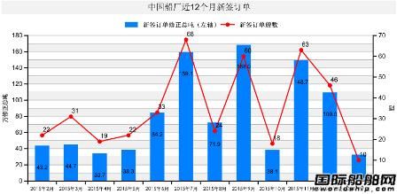據(jù)克拉克松統(tǒng)計,2016年1月,中國船廠接獲新船訂單僅10艘,32.0萬CGT,環(huán)比下降了70.6%,同比下降了60.9%。