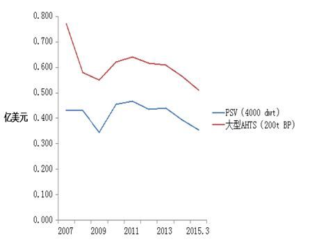 2)年初以來,350英尺自升式鉆井平臺(tái)價(jià)格累計(jì)降幅達(dá)20%左右,海洋工程船價(jià)格平均降幅約10%,其中技術(shù)含量較低的中小型海洋工程船表現(xiàn)較為明顯。