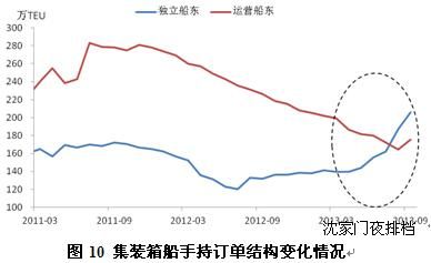集裝箱船方面,班輪公司在上一輪大型船訂造熱潮中,主要通過自有資金進(jìn)行訂造。隨著班輪公司運(yùn)力升級(jí)的持續(xù)推進(jìn),新一輪訂造在2012年末再次啟動(dòng),推動(dòng)集裝箱手持訂單量開始回升。但由于班輪公司運(yùn)營持續(xù)艱難,自有資金訂造能力受到大幅削弱,卻又不得不進(jìn)行運(yùn)力升級(jí)以保持市場(chǎng)份額,從而借助獨(dú)立船東的力量發(fā)展運(yùn)力,導(dǎo)致集裝箱船手持訂單的結(jié)構(gòu)發(fā)生很大變化,獨(dú)立船東手持訂單量逐步超過運(yùn)營船東,同時(shí)也推動(dòng)融資租賃交易數(shù)量和融資額大幅增長。