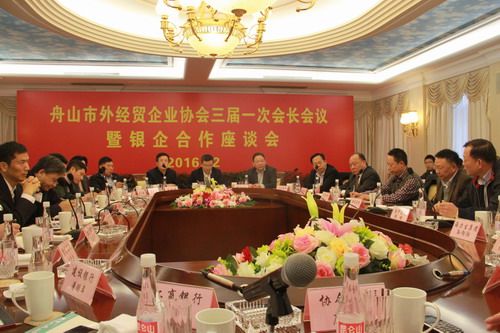 2016年12月20日下午,舟山市對外經濟貿易企業(yè)協(xié)會在朱家尖和潤集團總部召開三屆一次會長會議暨銀企合作座談會,市政府黃國華副市長出席會議并作講話。出席本次會議的還有市商務局干松章局長、盛惠敏副局長、舟山出入境檢驗檢疫局、舟山海關、舟山邊檢、舟山農業(yè)銀行、中國銀行、交通銀行、浦發(fā)銀行、建設銀行、工商銀行和協(xié)會會長、副會長單位的領導。會上,協(xié)會會長和潤集團董事局主席虞松波致詞,協(xié)會秘書長莊和合主持會議并作工作匯報,參會同志進行交流發(fā)言,大家回顧2016年,展望2017年,共同商討下一步發(fā)展大計,積極尋找金融支持企業(yè)的合作點;雙方認為,在當前復雜多變的國際環(huán)境中,銀企雙方要同舟共濟,抱團取暖,克服困難,積極進取,為舟山外貿經濟發(fā)展再作貢獻。會議以務實為出發(fā)點,順利完成了各項議程,收到了預期效果。 (協(xié)會秘書處)