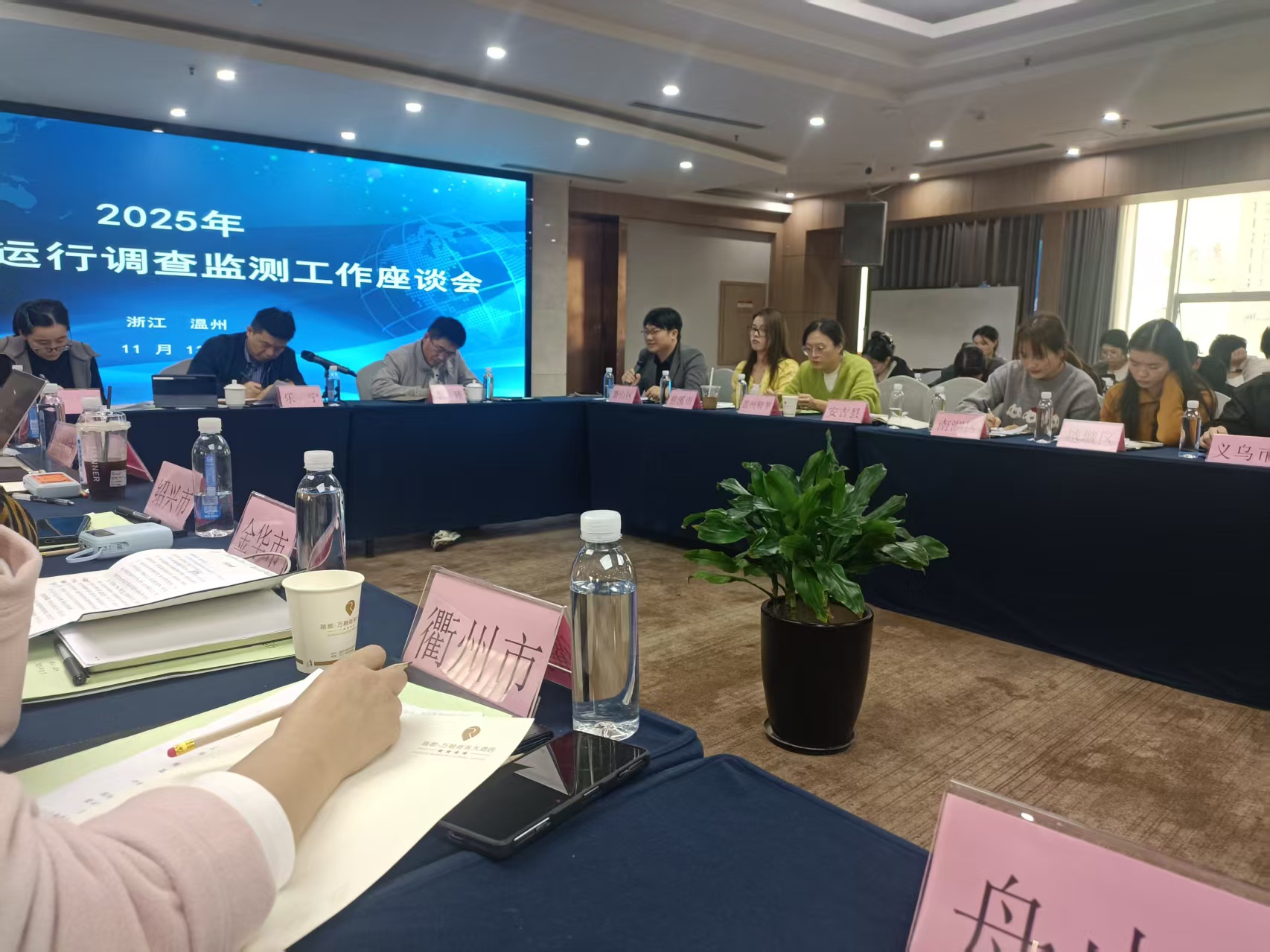 11月13日上午,海關(guān)一級調(diào)研員丁處長以“2025年中美經(jīng)貿(mào)戰(zhàn)下的韌性與突圍”為題作了深入分析,并結(jié)合浙江省各市的進(jìn)出口數(shù)據(jù)進(jìn)行了細(xì)致解讀。國家外匯管理局溫州市分局陳婷婷老師系統(tǒng)介紹了匯率避險及相關(guān)支持政策,為各監(jiān)測點(diǎn)應(yīng)對外匯波動提供了實用指導(dǎo)。當(dāng)日下午,省商務(wù)廳貿(mào)發(fā)處副處長樂寧、李臻副主任等領(lǐng)導(dǎo)共同組織了全省商務(wù)運(yùn)行調(diào)查監(jiān)測系統(tǒng)工作座談會。來自全省各市、區(qū)縣的與會代表,圍繞監(jiān)測工作現(xiàn)狀、遇到的困難與挑戰(zhàn)、當(dāng)前形勢研判、企業(yè)對接實務(wù)以及相關(guān)建議等方面展開了深入交流。