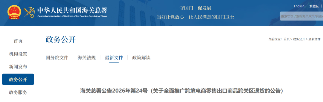 4月1日起施行,跨境電商利好!海關(guān)總署全面推廣9610出口跨關(guān)區(qū)退貨 [發(fā)布時間]:2026-03-17
